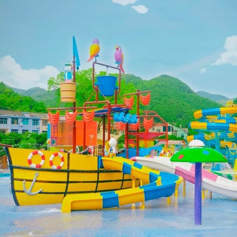 Features: Water slide, boat, climbing wall